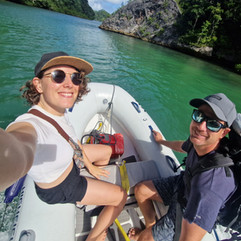 Erst am hintersten Ende, als wir glaubten, schon irgendwo tief im Mangrovendschungel verirrt zu sein, tauchten ein paar einzelne Hütten vor uns auf. Kurz bevor wir das Ufer erreichten, versperrte uns ein Fischnetz plötzlich den Weg, das zwischen den Mangroven befestigt und für die YY („WaiWai“, unser Dinghy) unüberwindbar war. Nachdem wir vergeblich einen anderen Weg an Land gesucht und dabei sogar einen Stein mit dem Motor touchiert hatten, der sich im, durch die Mangroven getrübten Wasser versteckt hatte, gaben wir auf und machten uns auf den Rückweg zur Yum Yum. Da es aufgrund der Tide nur einmal pro Tag möglich war, bis ganz ans Ende der Lagune zu fahren, probierten wir es am nächsten Tag zum zweiten und letzten Mal – erfolglos. Später erzählten uns andere Segler, dass sie gehört hatten, dass Tui’s Frau gerade ein Kind zu Welt gebracht hätte und die Familie wohl deshalb gerade nicht in ihrem abgelegenen Zuhause, sondern auf der Hauptinsel im Krankenhaus war.